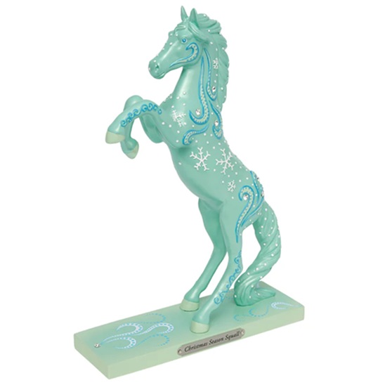 One cold and stormy Christmas Eve, a horse with a shimmering blue coat was traveling through a snow-covered landscape when he heard Christmas carols being sung. Following the sound, he came across a group of children who were helplessly lost in a snow squall. After guiding them to safety, the children decided to name the horse “Christmas Season Squall.”