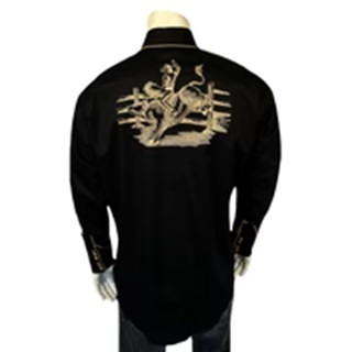 Men's Vintage Black Bull Rider Embroidered Western Shirt