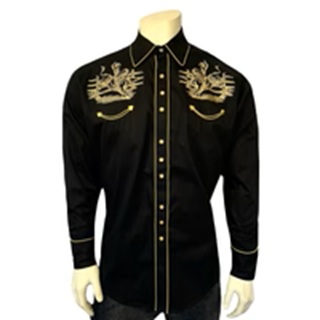 A perfect marriage of classic Western styling and ornate embroidery. This shirt celebrates Rockmount’s special place in Western fashion. Finely embroidered on front and back yokes. This is a fresh alternative to boring conventional fashion. Features 6 snap shotgun cuffs, piping, smile pockets with embroidered arrows, our signature classic. Relax fit, rugged double needled construction. Fabric is comfortable 100% Cotton, import.