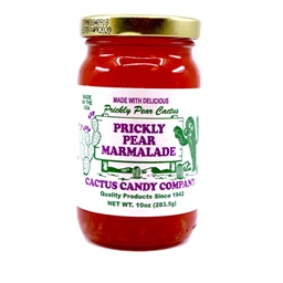 Prickly Pear Marmalade from the Cactus Candy Co. of Phoenix, Arizona. The marmalade is made from the delicious prickly pear cactus with a sweet refreshing flavor. Made with fresh prickly pear, pear juice, orange peel and sugar.