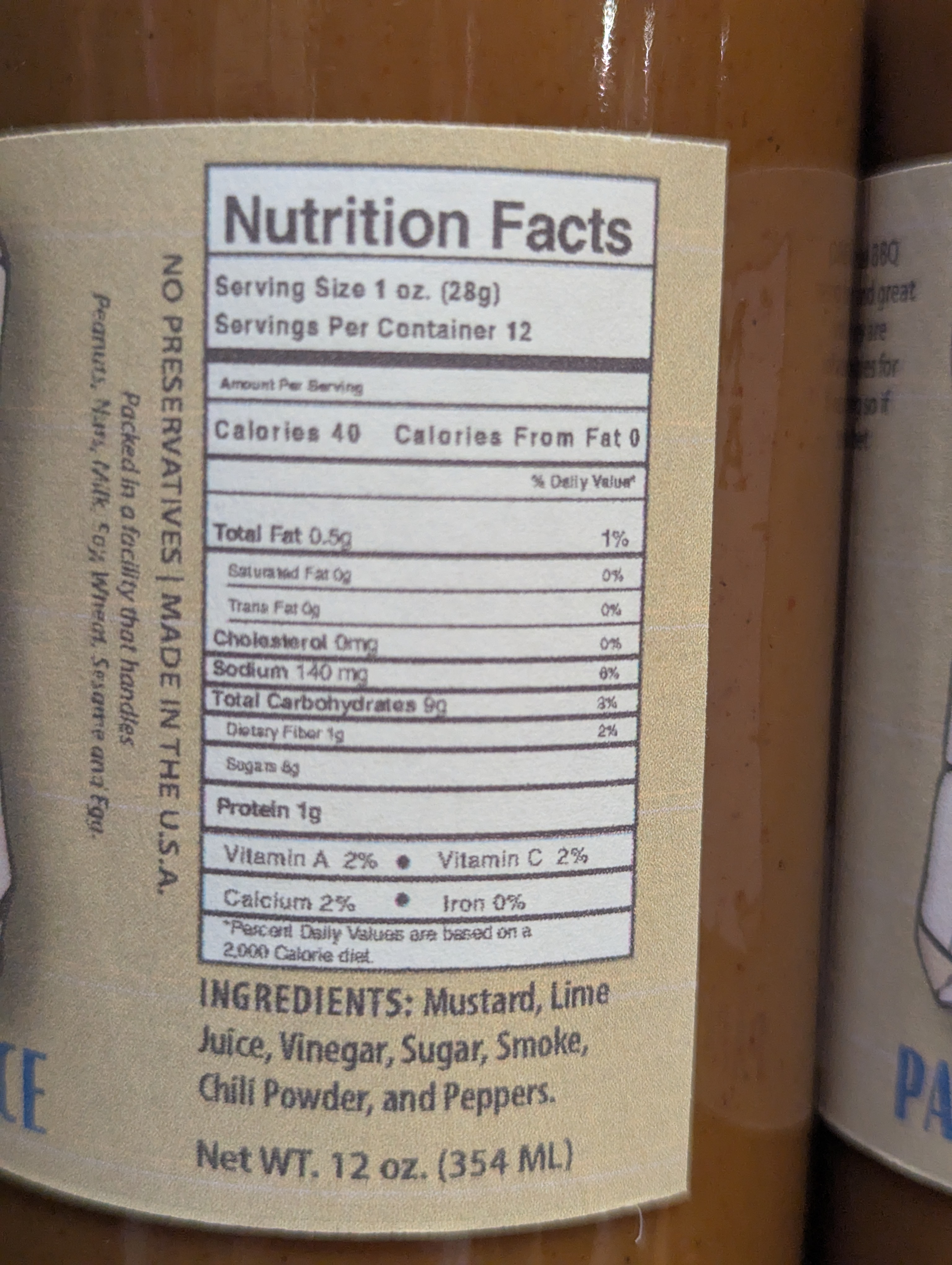Ingredients: Mustard, Lime Juice, Vinegar, Sugar, Smoke, Chili Powder, and Peppers