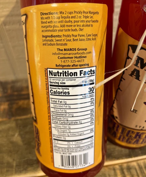 Ingredients: Prickly Pear Puree, Cane Sugar, Lemonade, Sweet n' Sour, Beet Juice, Citric Acid and Sodium Benzoate