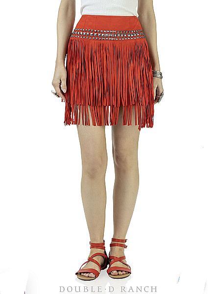 Make a solid statement in this swinging skirt. As much as we love to play with prints and patterns, sometimes you just can’t beat the chic of a standout solid – and this gorgeous goat suede skirt NAILS IT. The sleek straight-line silhouette is given a rockstar edge with the dimensional square stud trim and layers of long tonal fringe. It has an irresistible vibe that’s all-around awesome from daytime to the dancehall.