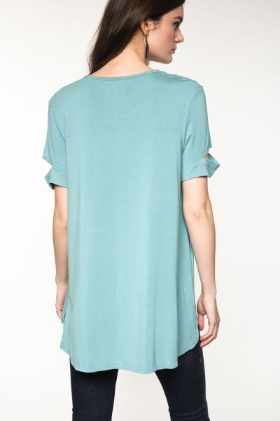 Short sleeve top with slit detail, V-neck, high-low hem