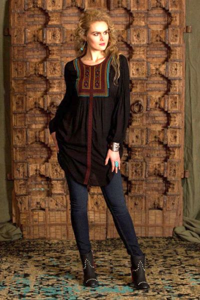 Accented with folk embroidery and contrast lace trim, the Montrose Tunic can be worn with leggings and a pair of boots for effortless style.
