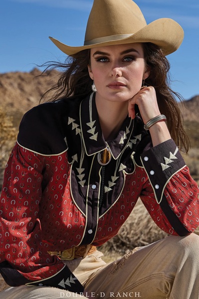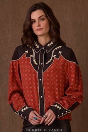 Y’all know how much we love a horseshoe, so this charming little print stole our hearts right out of the gate, and it’s perfectly complemented by the contrasting cuffs and yoke. A slight spin on your traditional pearl snap silhouette, this darling top has the traditional button-down vibe with a fresher, more relaxed fit.