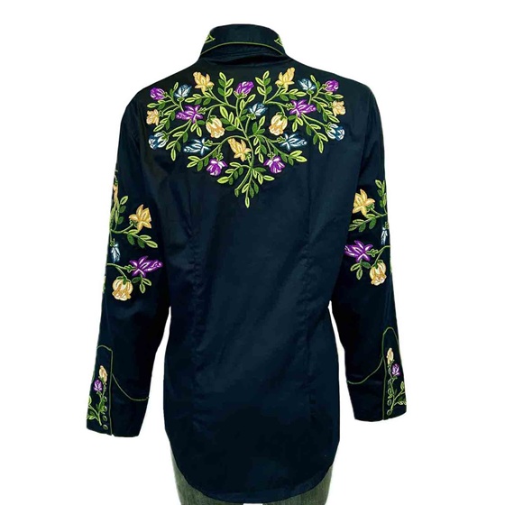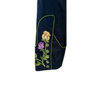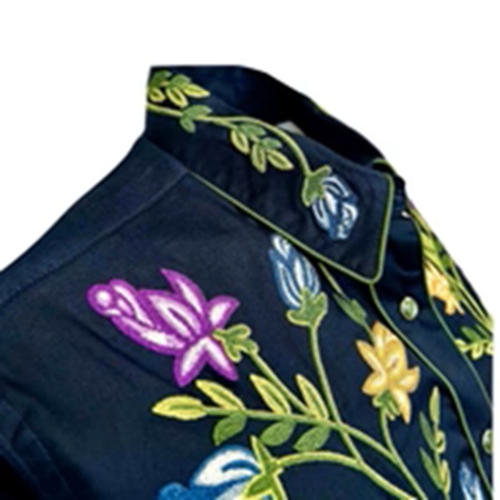 Women's Vintage Navy Floral Crochet Embroidered Western Shirt