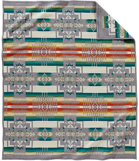 First made in the 1920's, the Chief Joseph blanket is one of the oldest, on-going blankets made by Pendleton Woolen Mills. The blanket pattern celebrates the heroism of the Northwest's great Nez Perce leader, Chief Joseph. Its design is balanced with arrowheads symbolizing bravery and pointing in all directions of Mother Earth. The Chief Joseph is a woven jacquard that is reversible to offer two dramatically different looks.