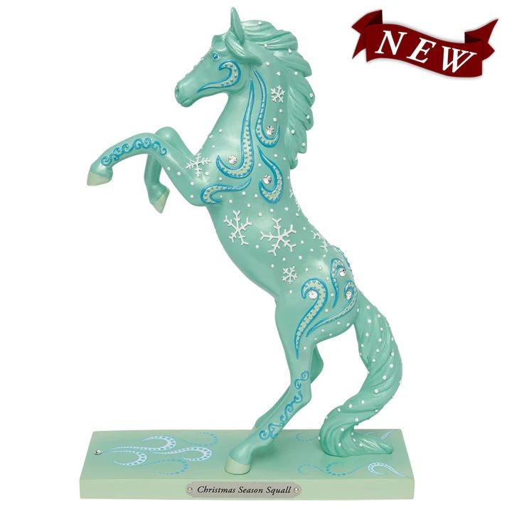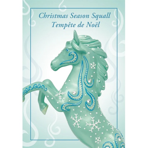 One cold and stormy Christmas Eve, a horse with a shimmering blue coat was traveling through a snow-covered landscape when he heard Christmas carols being sung. Following the sound, he came across a group of children who were helplessly lost in a snow squall. After guiding them to safety, the children decided to name the horse “Christmas Season Squall.”