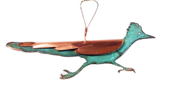 Hand-made copper verdigris Roadrunner Christmas ornament