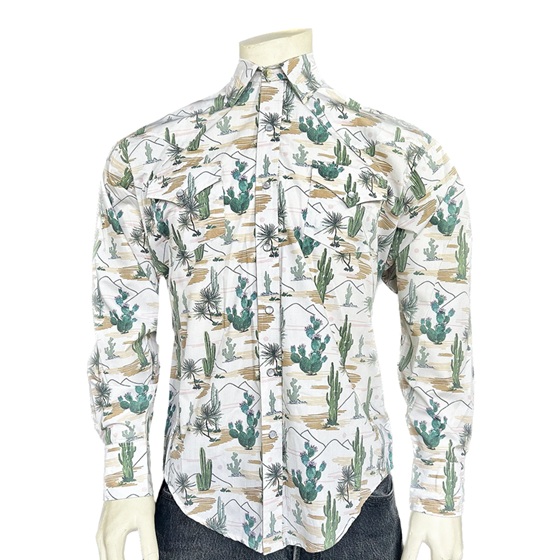 The world does not need another boring shirt. A Western first, this fresh new print is one of a kind for the guy who rejects the sameness of post-industrial society. The soft natural fabric is richly dyed in warm earth tones, premium cotton and polyester. Features our famous Sawtooth pockets and Diamond snaps — the longest running shirt design in America. Relaxed fit. Imported.