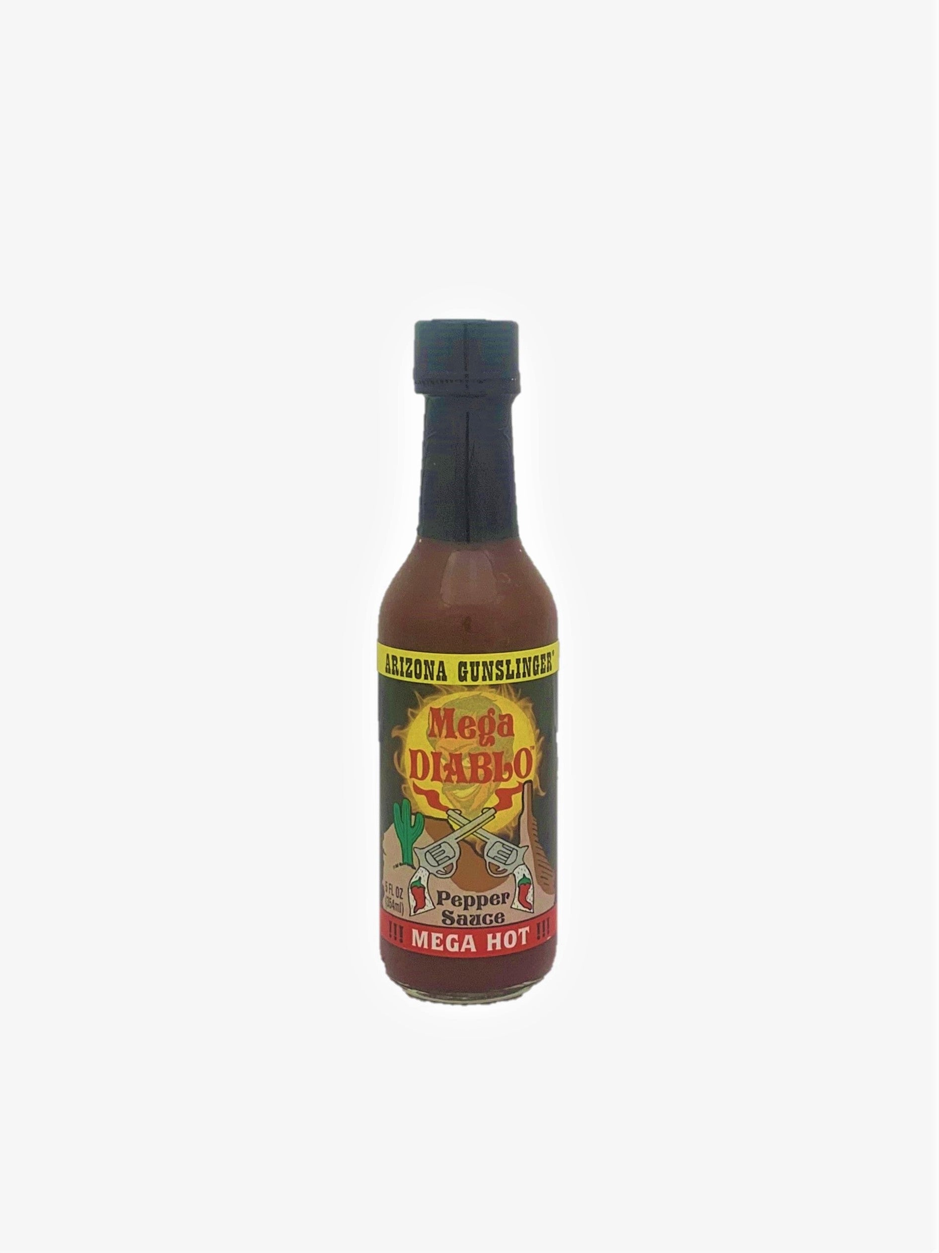 Mega Diablo hot sauce fans seek unrelenting extreme heat.  AZ Gunslinger creation pushes limits with habanero, cayenne, and pepper extract intensity.