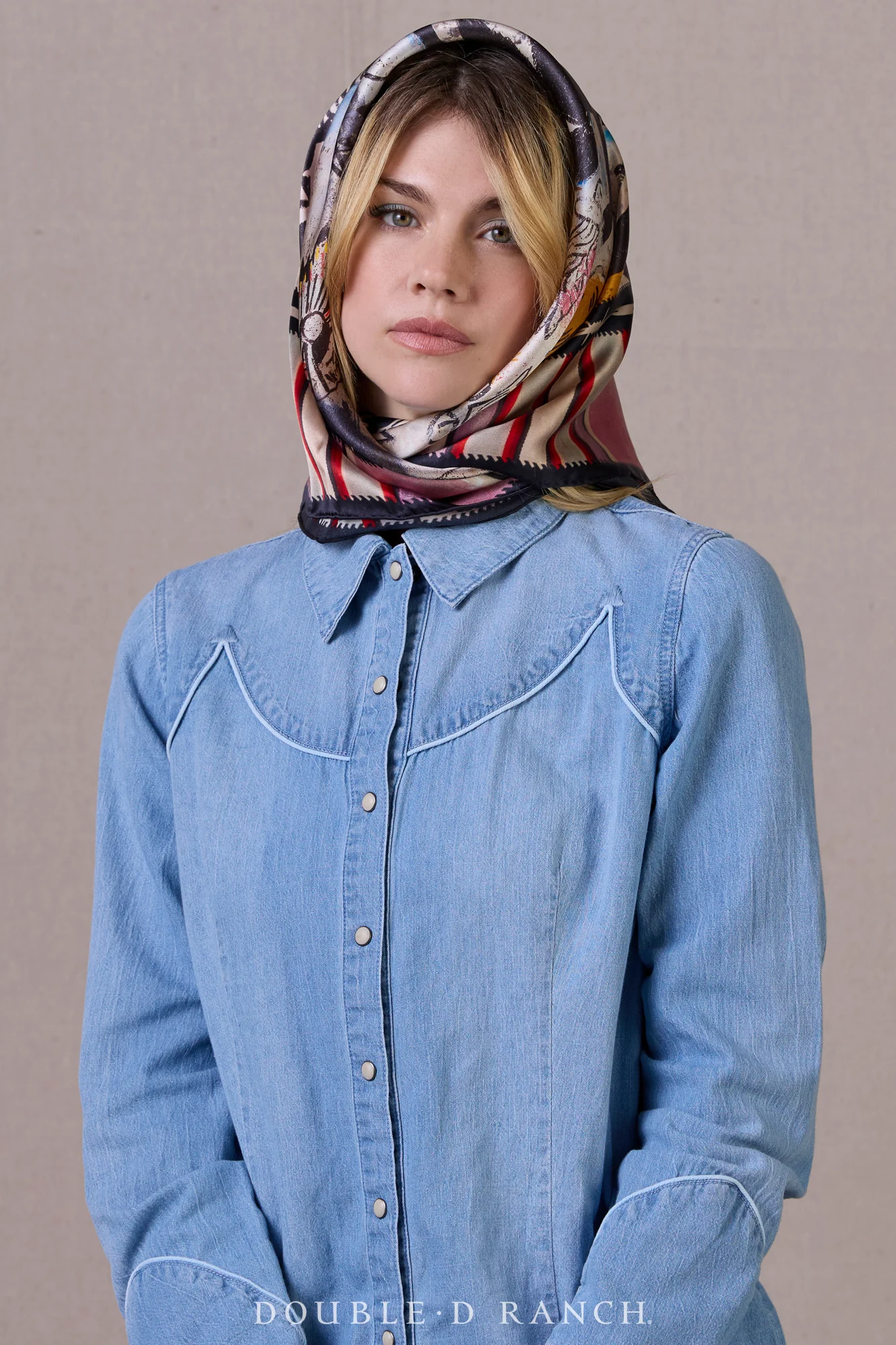 his season’s signature scarf is a beautiful silk statement piece, boasting the eclectic artwork of creative collaborator Ryan Buenning. The retro-Western vibes are a cool contrast to the chic silk, and a perfect piece to complement and commemorate the Cowboy Graffiti collection.
