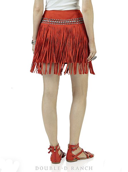Make a solid statement in this swinging skirt. As much as we love to play with prints and patterns, sometimes you just can’t beat the chic of a standout solid – and this gorgeous goat suede skirt NAILS IT. The sleek straight-line silhouette is given a rockstar edge with the dimensional square stud trim and layers of long tonal fringe. It has an irresistible vibe that’s all-around awesome from daytime to the dancehall.