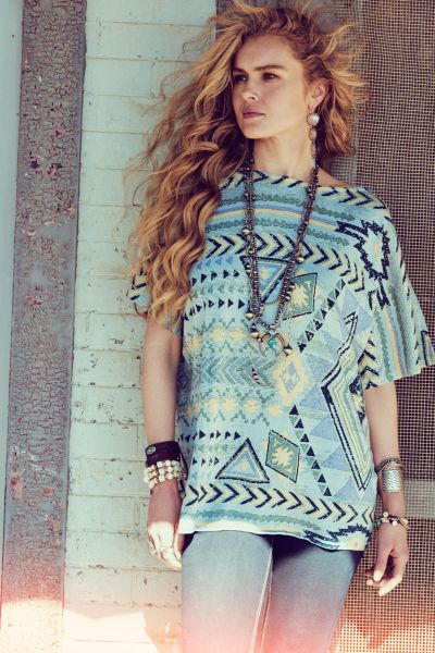 Blue Sky is Double D's new take on the classic blanket print poncho.