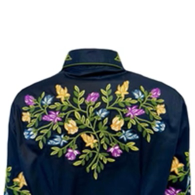 Women's Vintage Navy Floral Crochet Embroidered Western Shirt